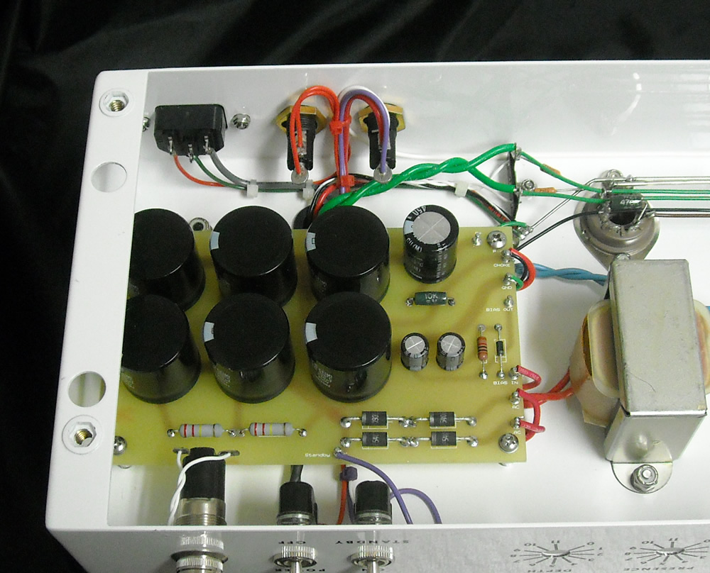 Wires soldered to terminals. Clip the ends of the blue wires off so that they don't ground to anything during testing.
